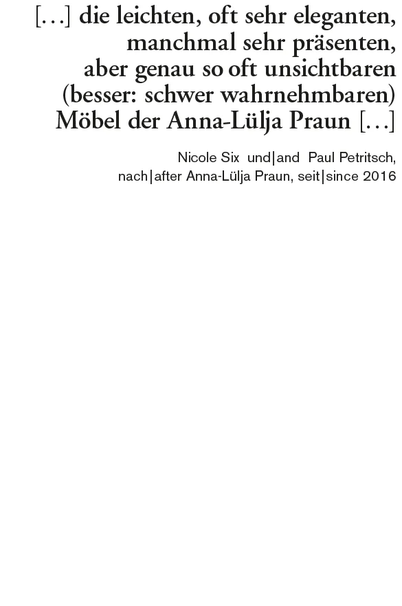 Anna-Lülja Praun (*1906 in St. Petersburg, † 2004 in Wien) gehörte ab den 1930er Jahren zu den Pionier:innen in der österreichischen Architektur- und Designszene. Eine allgemeine Anerkennung ihres Schaffens, wie z.B. bei Margarete Schütte-Lihotzky oder international gesehen bei Eileen Gray, fehlt jedoch bis heute.