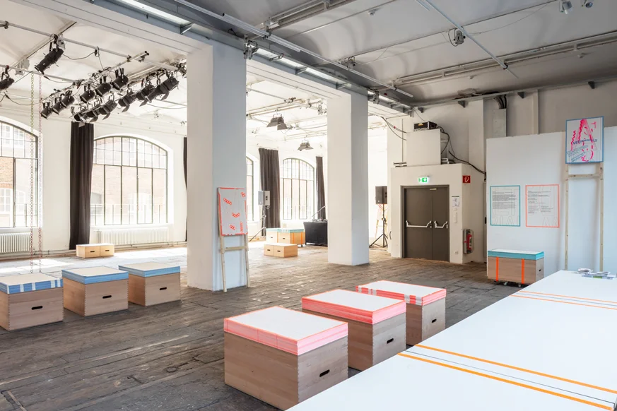 Für die VERSUCHSANSTALT installieren Nicole Six und Paul Petritsch einen Shared Space bestehend aus Plakaten, Arbeitsraum, Bar, Veranstaltungs- und Ausstellungsraum. Alle beteiligten Institutionen und Besucher*innen sind zur Zusammenarbeit, Neuinterpretation und Umgestaltung eingeladen.