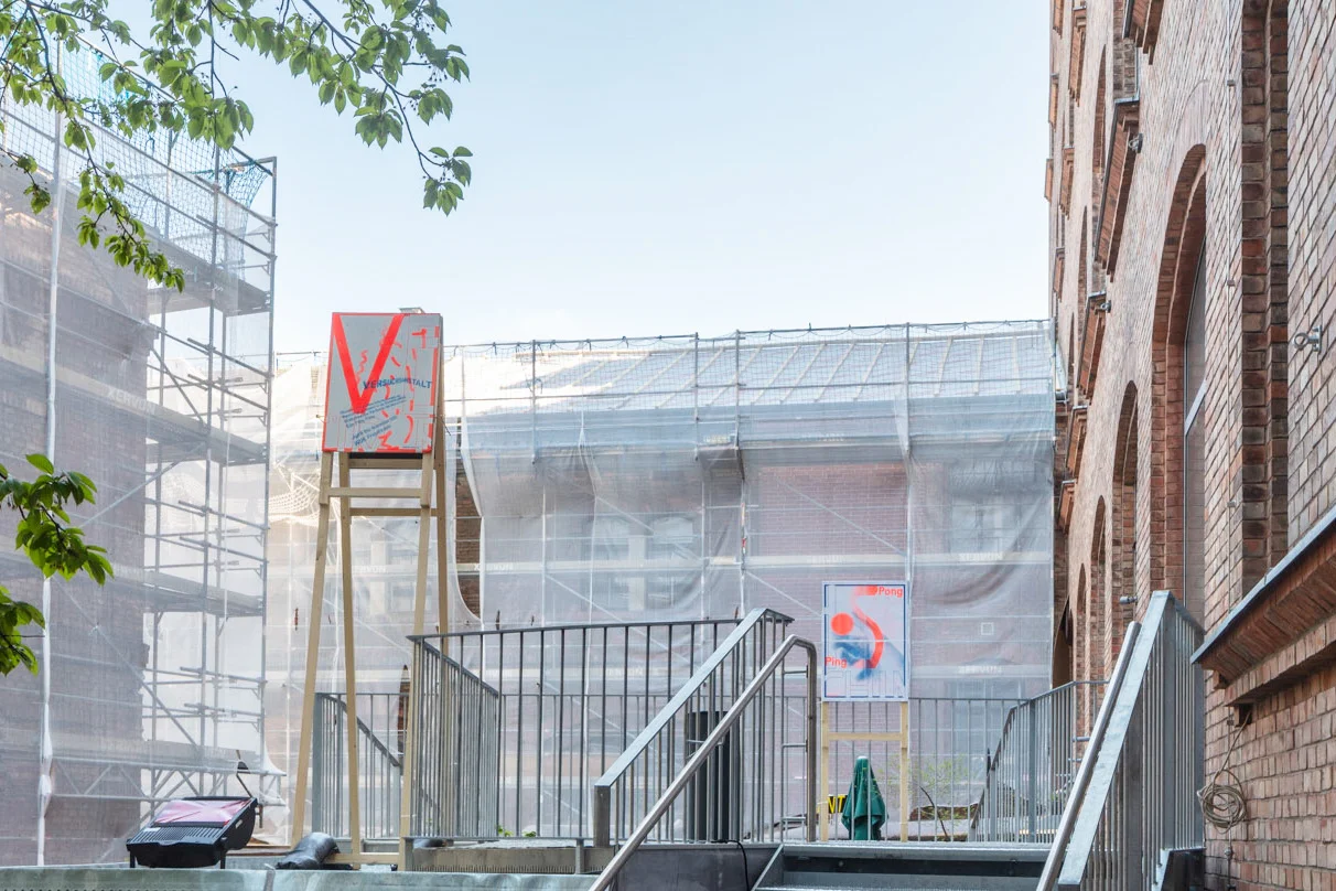 The central element is a series of posters based on an "imprint" of the original lettering "Versuchsanstalt" at the WUK-Mittelhaus. The typography reflects the architecture of the WUK, it runs around the corner, up and down stairs or seeks a perspective vanishing point. The posters are a guidance system, announcer, work material and exhibition space in the WUK as well as in the extended urban space at the same time.