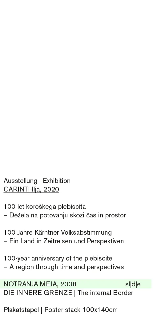 “The border that runs through the middle of the state of Carinthia and which one searches for in the images, knowing that it exists, becomes an invisible trail of remembrance, is perceived as an inner border that exists in one’s head and whose meaning lies in one’s own knowledge and consciousness.”[9]