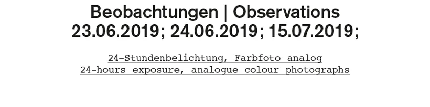 The film Ohne Titel (Alberner Hafen), 2017 is part of a series made with a video camera, the recordings of which were triggered by a heat-motion sensor. Each shot takes 60 seconds; then the camera returns to standby mode until it is triggered once again. The clips thus created are presented as seamless sequence. They show a piece of nature. For long stretches it’s not clear what may have triggered the camera. The camera’s static position, the unabridged juxtaposition of all recorded sequences in full length, and the vacancy of significant events lend the work a minimalistic aesthetics. But what can viewers actually realise with this experimental set-up? A categorisation in interesting and uninteresting recordings, in well-made and poor images leads nowhere. Instead, the dispositive of the view itself is emphasised, without showing the technology that allows it to become visible at all. In this double bind of field observation and epistemology, viewers are directed to epistemological questions: What can we record with today’s media? How can we interpret the data compiled? And what slips our attention, for instance in those stretches when the camera was not activated? In times of an incessant mapping of the world and measuring oneself these are important questions in order to critically reflect on our attitude towards the environment that is largely transmitted via media.