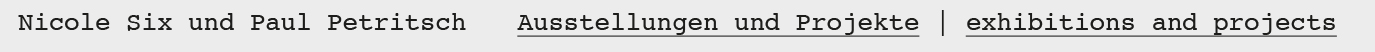 Nicole Six and Paul Petritsch have been realizing films, photographs, displays, artist books as well as site- and context-specific installations and projects in public space since 1997. They live in Vienna.