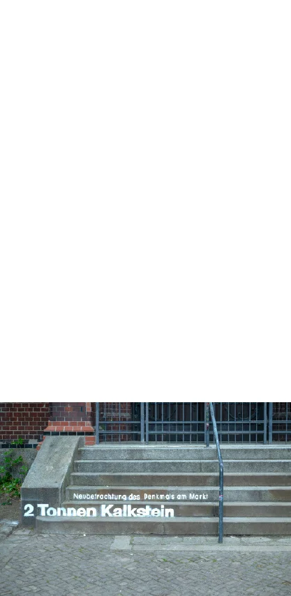 The programme takes place in collaboration with various local actors, the Pöge-Haus e.V. and the Heilig-Kreuz-Kirche, Stadtkuratorin Leipzig - the programme for art in public space, the curator and researcher Dr Gülşah Stapel and other experts. In the course of the ‘2 tonnes of limestone’ project, Nicole Six and Paul Petritsch will produce a publication on the monument, which will incorporate extensive archive research as well as ideas and discussions from the exhibition and the events.