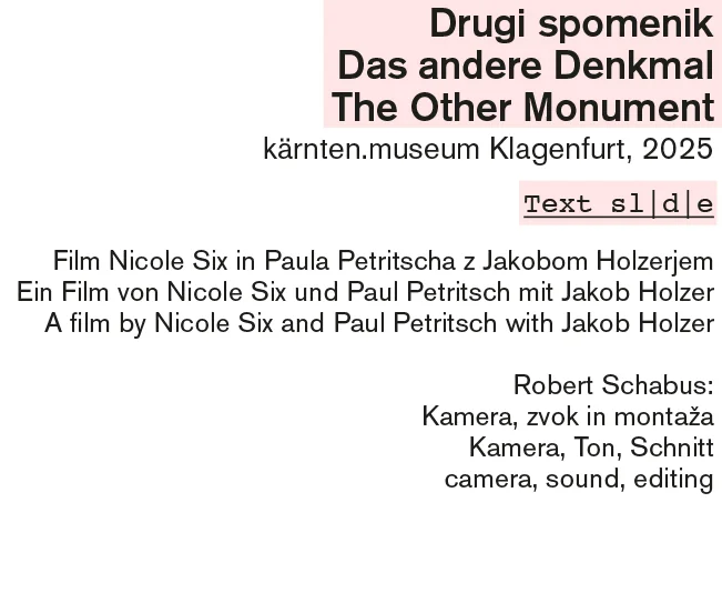 Peter Pirker, Ina Sattlegger, and Andreas Krištof want to show this partisan monument, which has until now not been introduced to the public, in the exhibition they are curating at the carinthia.museum: “Hinschaun! Poglejmo. Kärnten und der Nationalsozialismus. Koroška in nacionalsocializem” (Look at it! Carinthia and National Socialism), and they have asked us to contextualize it through an artistic intervention. The details were negotiated in an agreement with Aleksander Tolmaier, chairman of the Slovenian Cultural Society “Radiše” as well as the chairman, Milan Wutte, and secretary, Nikolaj Orasche, of the Association of Carinthian Partisans and Friends of the Anti-Fascist Resistance / Zveza koroških partizanov in prijateljev protifašističnega odpora.