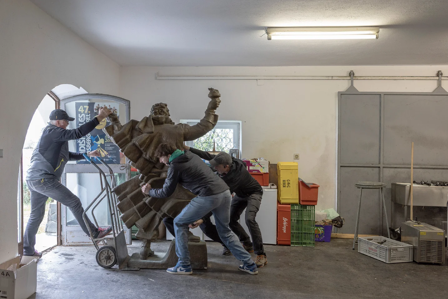 In 2023, as part of a conference co-organized by Elena Messner, Jakob Holzer gave a lecture about partisan art in Klagenfurt/Celovec, in which he spoke about the sculptor Marijan Matijević and his partisan monument at the Peršman farm. In the lecture notes, Nikolaj Orasche of the Association of Carinthian Partisans and Friends of the Anti-Fascist Resistance/Zveza koroških partizanov in prijateljev protifašističnega odpora recognized the figure of a partisan or torchbearer – opinions vary – which has stood in the cellar of the cultural center of the Slovenian Cultural Society “Radiše” since its opening in 1979. People say that the sculpture has “always been there”, but to this day no one knows how it ended up at the cultural center or anything about its whereabouts between when it was made in the mid-1950s and when it appeared in the cultural society’s beverage storeroom.